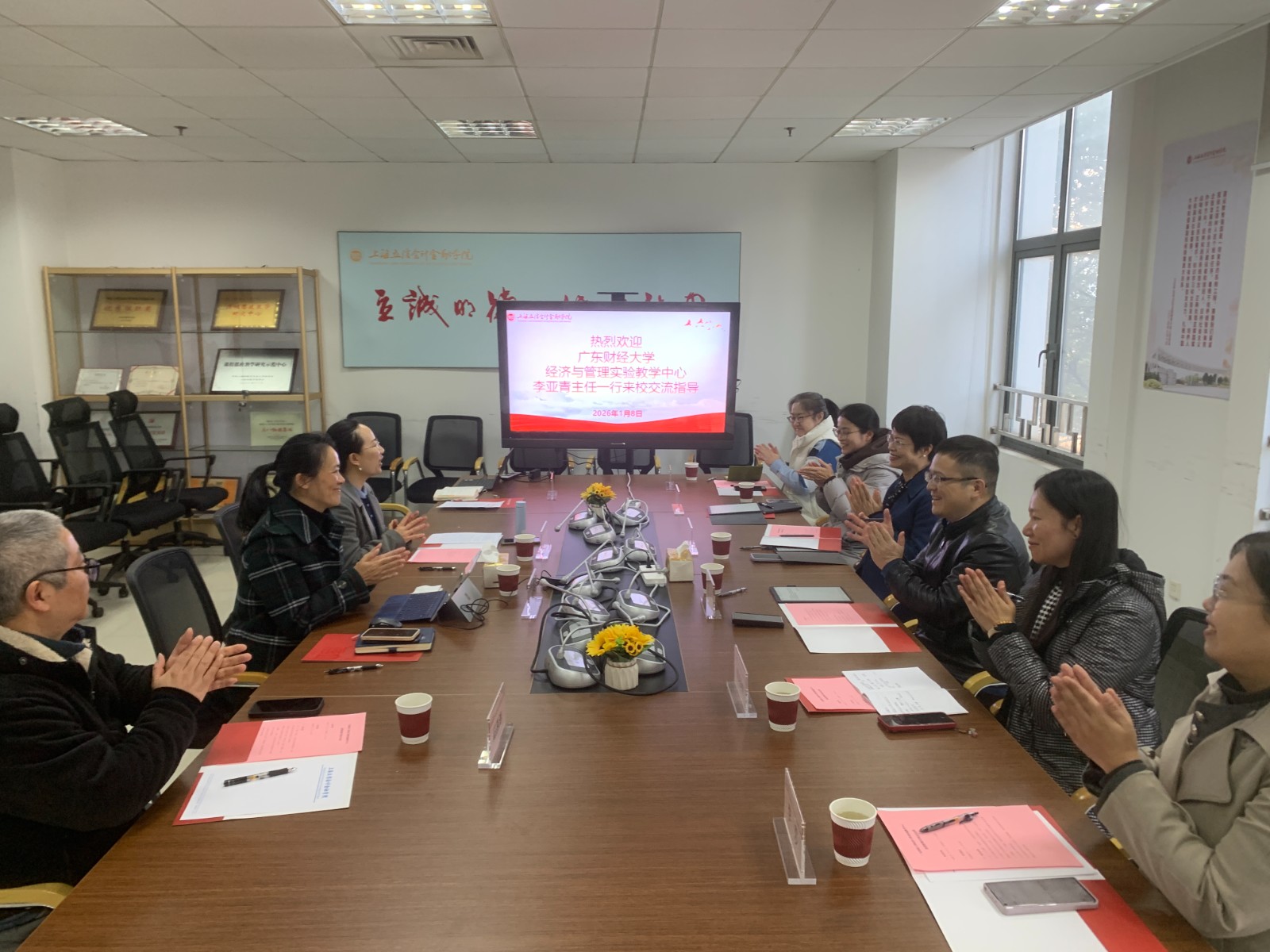 2026年1月8日上午,广东财经大学经济与管理实验教学中心李亚青主任一行六人莅临我校,就实验教学开展专题调研和交流。我校教务处、智慧校园建设中心相关负责同志参加了座谈会。 座谈会上,教务处处长罗秦代表学校对广东财经大学同仁的到访表示热烈欢迎,并简要介绍了我校的发展概况与教学建设成效。实验教学中心主任朱亚莉详细介绍了“重服务、强贡献”深化综合改革背景下,我校实验教学建设的整体思路与推进路径。 双方围绕”人工智能+”背景下经管类实验教学体系、校企协同教学资源建设机制、新兴信息技术在实验教学中的深度应用、实验教学管理制度创新等核心议题展开深入研讨,交流经验做法,共同探索实验教学高质量发展的可行路径。 此次交流活动进一步加深了两校之间的相互了解,也为今后持续开展合作、共享优质资源奠定了良好基础。