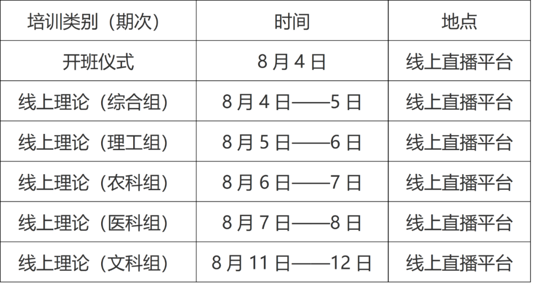 以直播形式开展线上理论培训,通过“全国高校教师网络培训中心”平台(https://szh.enetedu.com)进行观看。