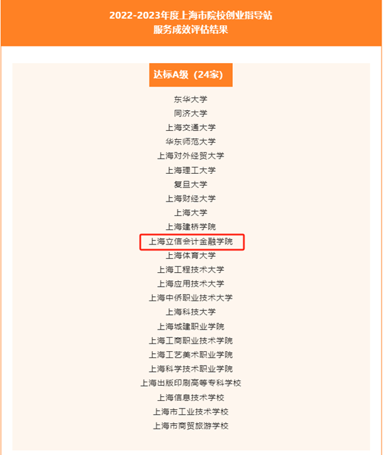11月21日,上海市就业促进中心和上海市学生事务中心公布了2022-2023年度上海市院校创业指导站服务成效评估结果,通过按要求学校自行提交评估所需材料和上海市就业促进中心组织的第三方集中评估,82家院校创业指导站服务成效达标,其中我校创业指导站获评“上海市A级院校创业指导站”。这是我校2022年入选上海市级创新创业教育实践基地后取得的又一重要突破。